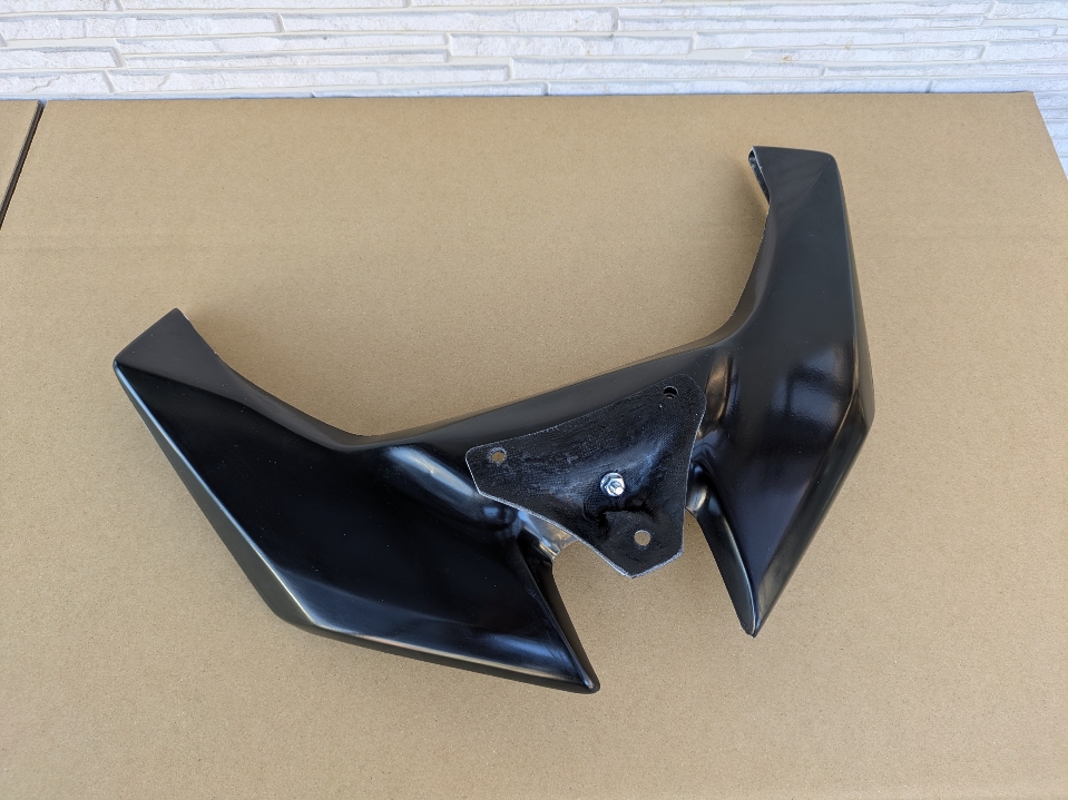 フロント ウイング CB フロントカウル 2025.10.12 FRP製 20000円 (黒ゲルコート) 艶黒・艶消し黒 塗装代 10000円 パールホワイト 塗装代 18000円 カーボン製 42000円 綾織り・平織 選択可能 取付はFカウルのアンダーパネルに3箇所ボルト固定です 前の一カ所はエッジに部分からセンターで28mmのところに穴開けして下さい それより前に開けるとナットがフレームに干渉します
